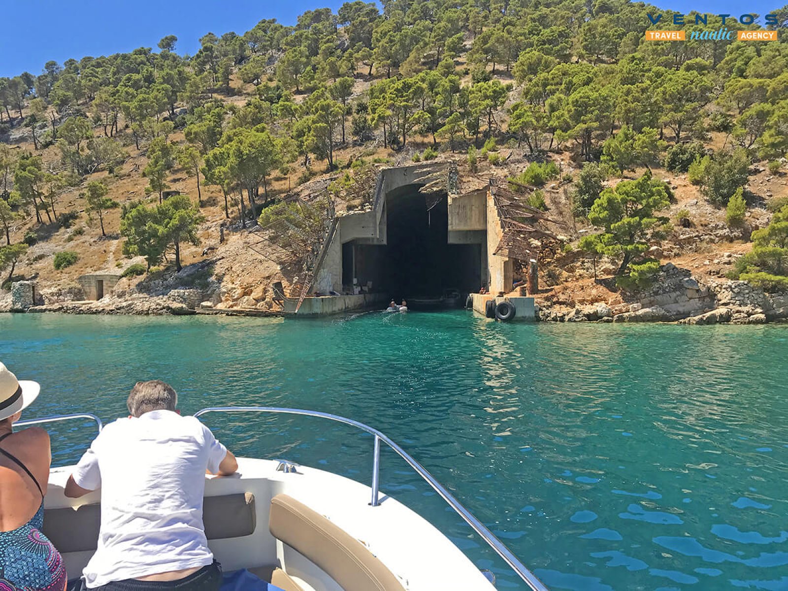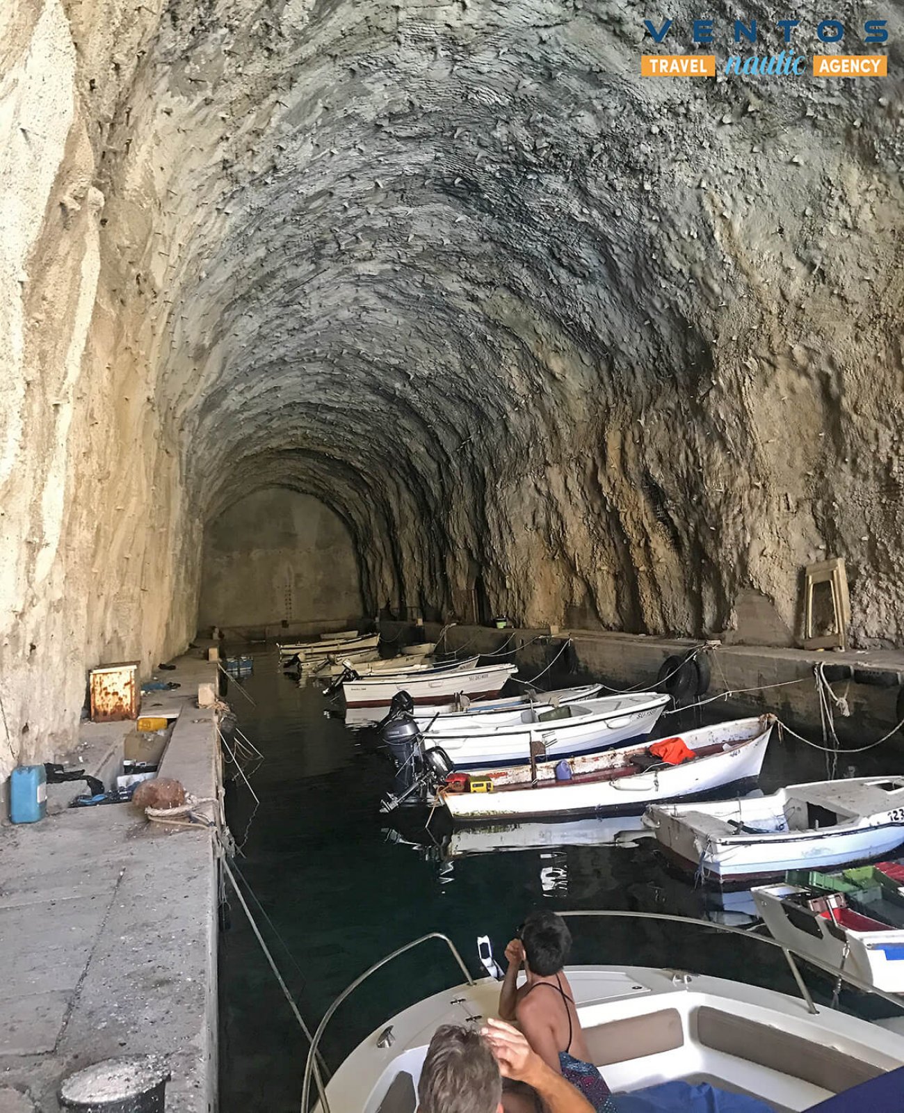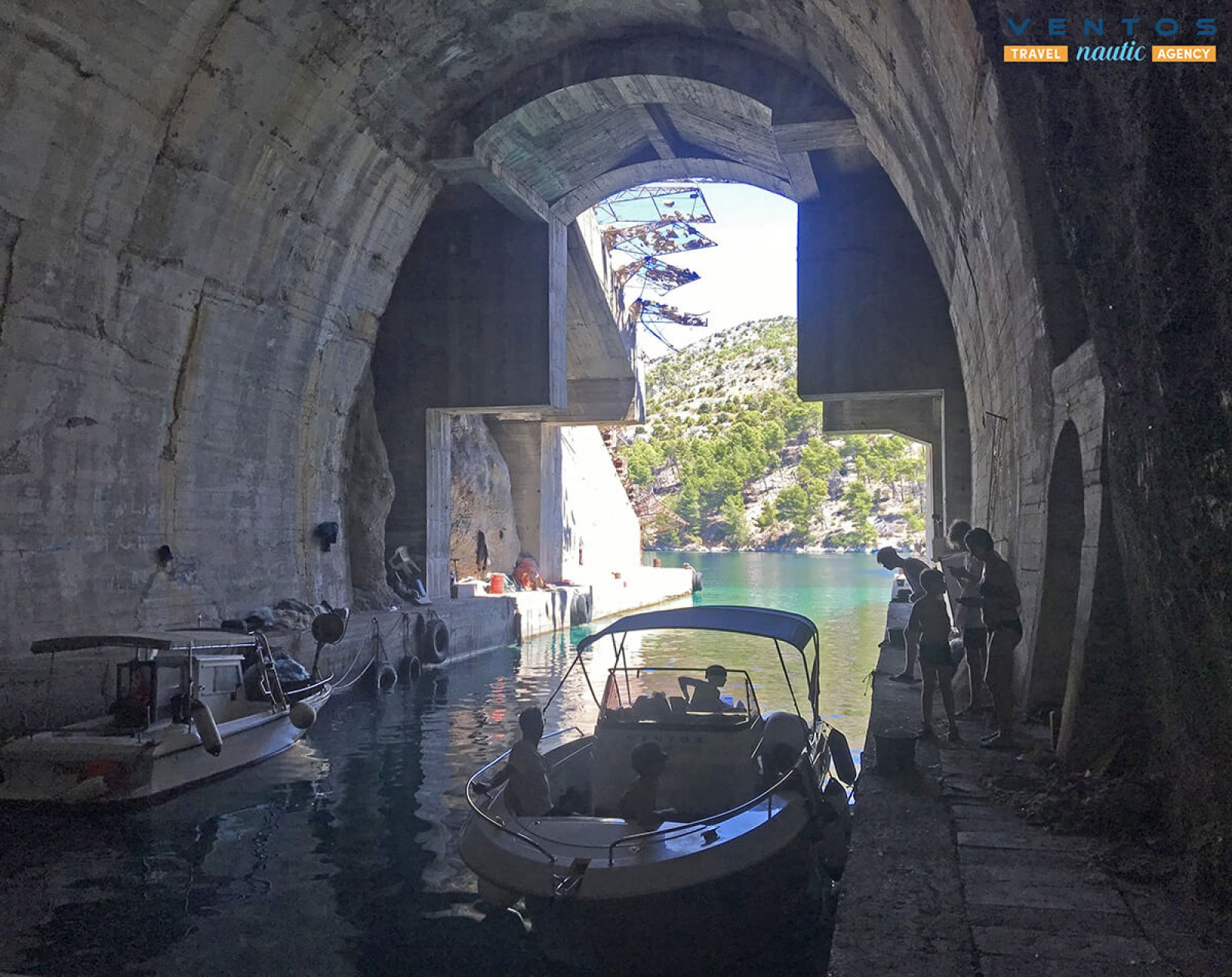 Built-in ex-Yugoslavia 60 years ago, it was intended for the safe harboring of special forces submarines and navy vessels. Tunnels have also preserved mechanisms for hiding the entrance in case of attack or aerial scouting. Nowadays, tunnels are used for safely harboring fishermen during sudden storms and are often visited by many tourists.