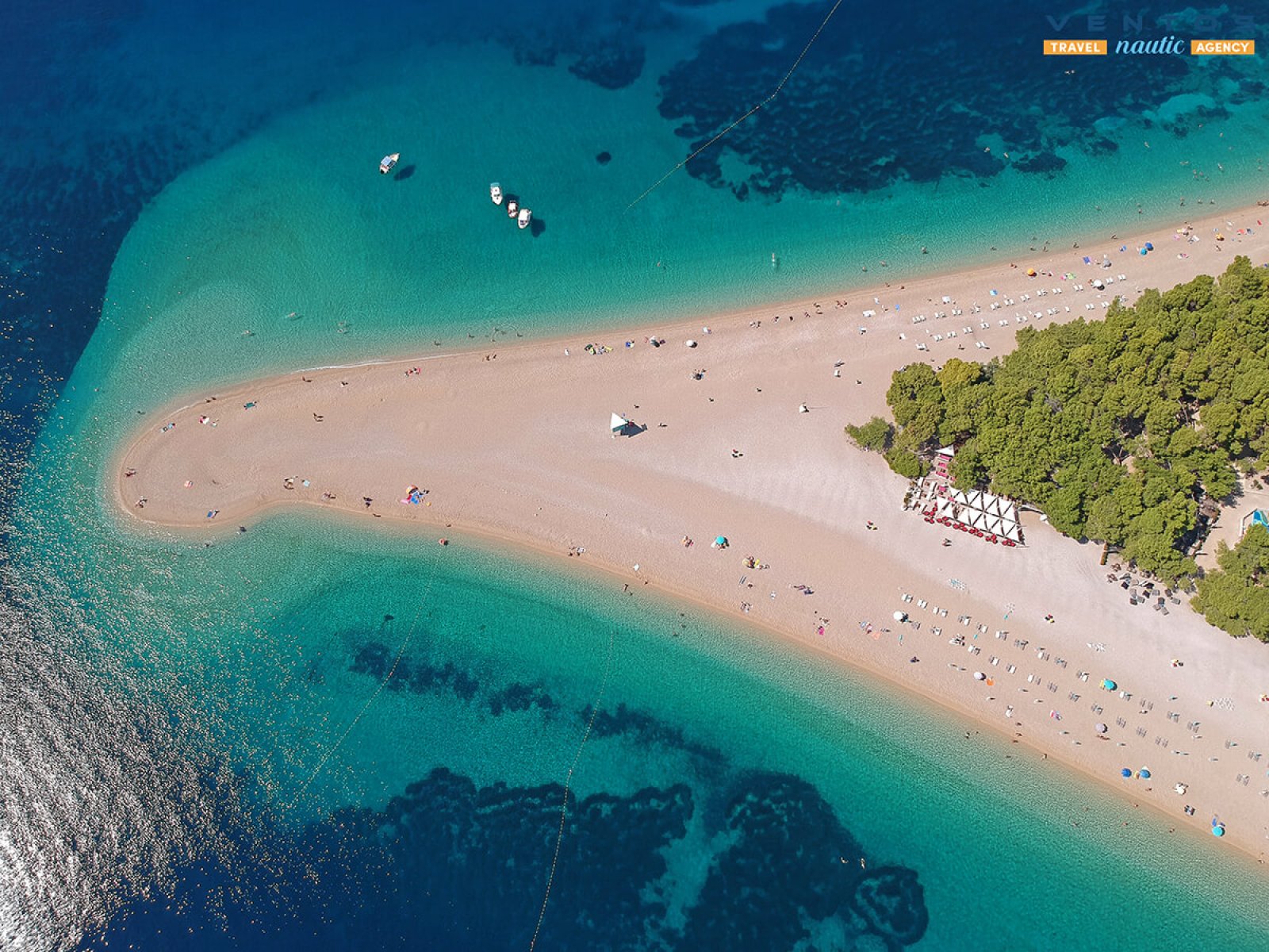 After an hour of driving, we will arrive at the paradise beach. The Zlatni Rat is one of the most beautiful beaches on the Croatian coastline, also known as the "symbol of the Adriatic". It was created by deposits of fine pebbles as sediment around the underwater reef, spreading as a tongue as much as 500 meters into the sea. The very tip of the Zlatni rat keeps changing its shape constantly due to the influence of winds, waves, and currents, making it appear different and repeatedly interesting.